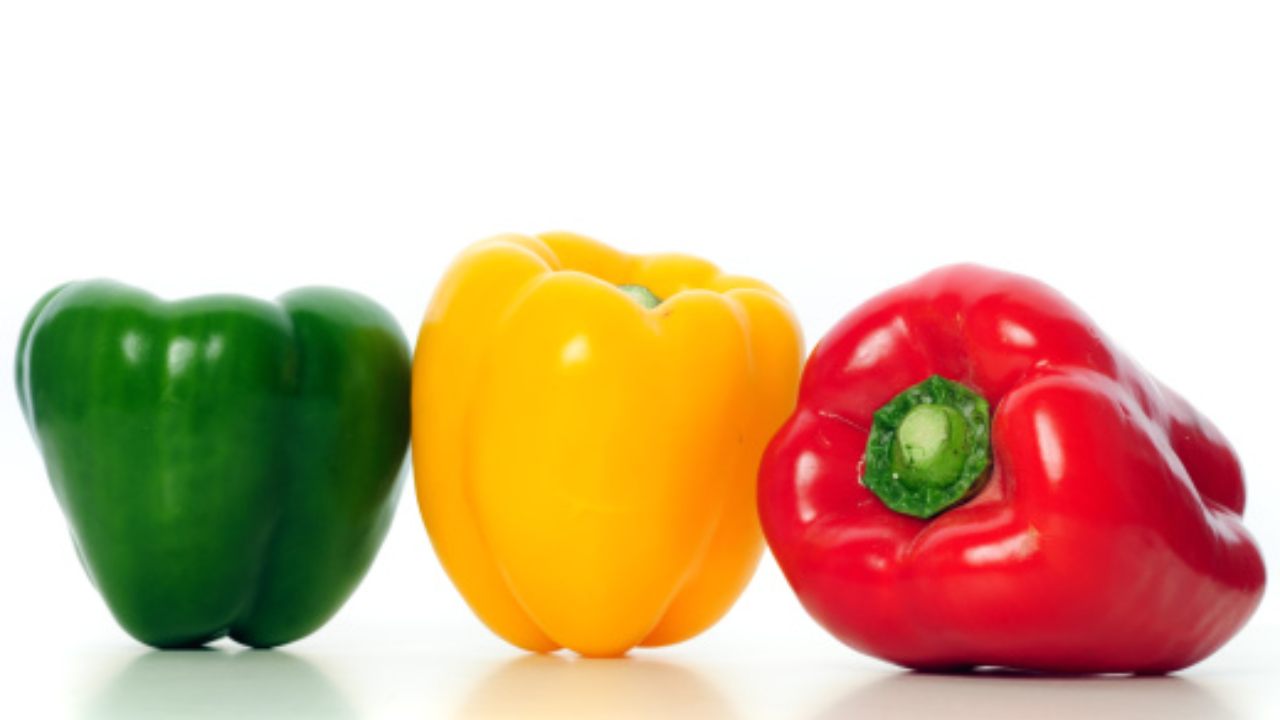 Peppers have different colors; the most prominent ones are green, yellow, and red.